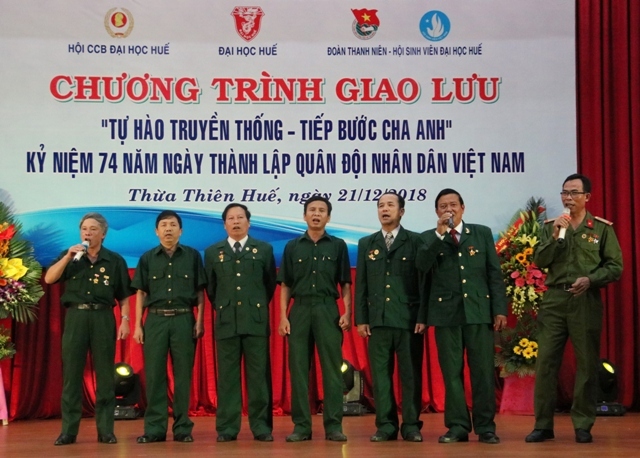HNN.VN - Đó là chương trình giao lưu được Hội Cựu chiến binh Đại học (ĐH) Huế phối hợp Đoàn Thanh niên – Hội sinh viên ĐH Huế tổ chức vào tối 21/12, kỷ niệm 74 năm ngày thành lập Quân đội Nhân dân Việt Nam.