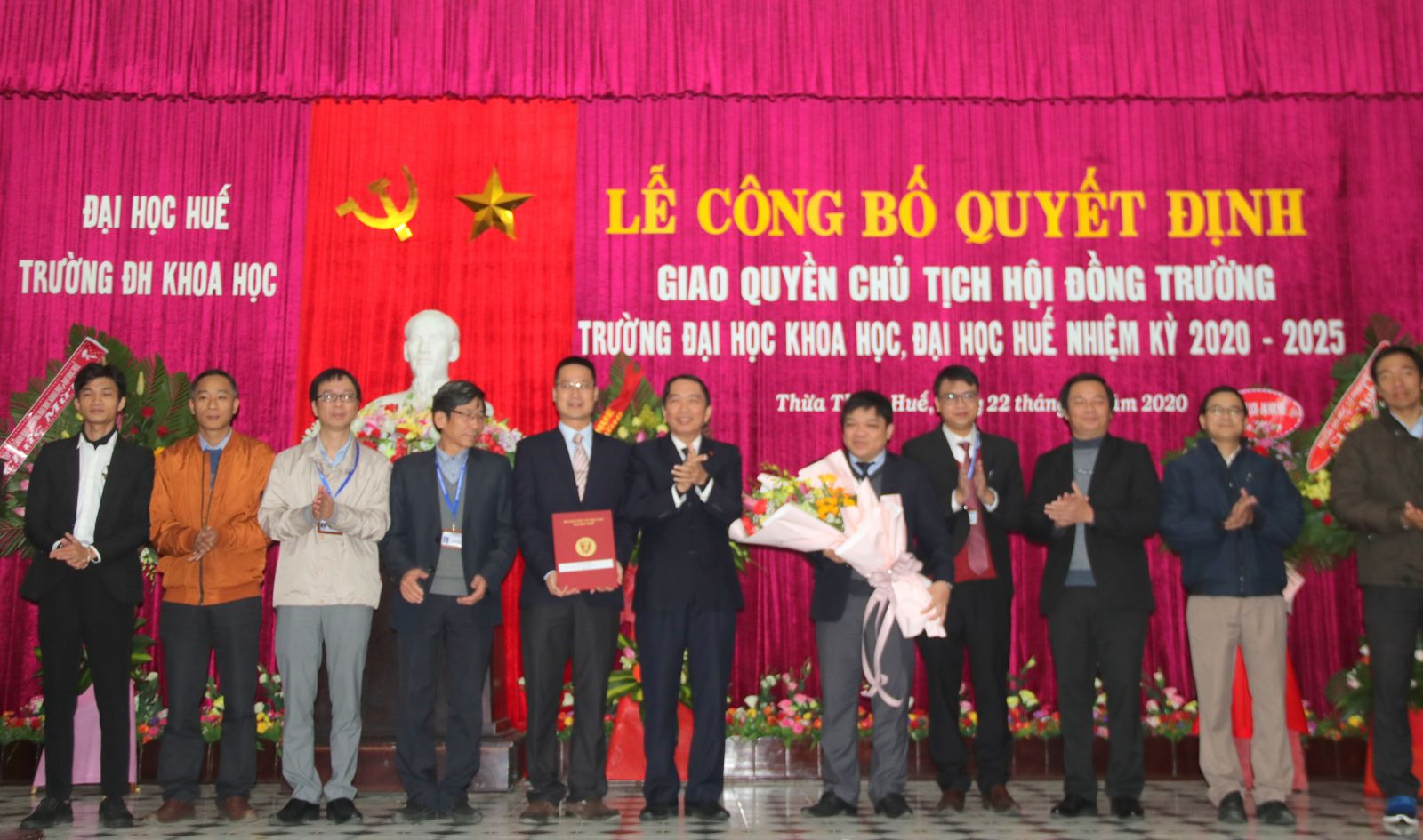 Tại buổi lễ, đại diện Hội đồng ĐH Huế công bố các quyết định về việc công nhận Hội đồng trường Trường ĐH Khoa học, ĐH Huế nhiệm kỳ 2020 – 2025 và giao Quyền Chủ tịch Hội đồng trường nhiệm kỳ 2020 – 2025. Hội đồng trường Trường ĐH Khoa học, ĐH Huế nhiệm kỳ 2020 – 2025 gồm 17 thành viên. Ông Bùi Quang Vũ, Tiến sĩ, Giảng viên, Ủy viên Ban Thường vụ Đảng ủy Trường ĐH Khoa học, ĐH Huế được giao Quyền Chủ tịch Hội đồng trường.