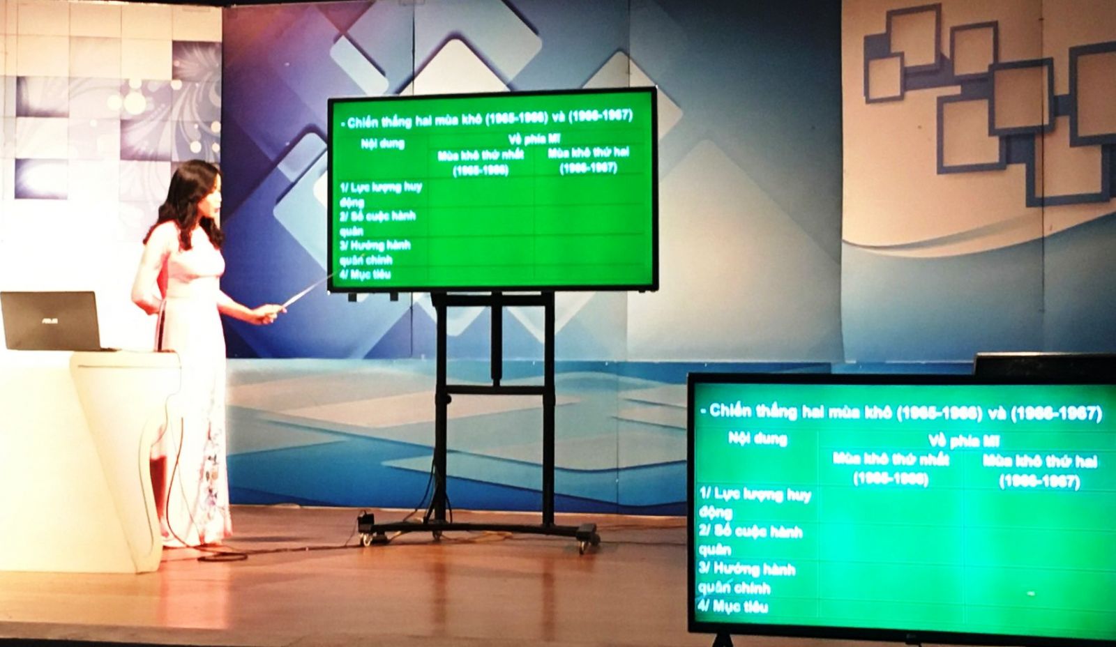 Một tiết học lịch sử được giáo viên giảng dạy trên truyền hình