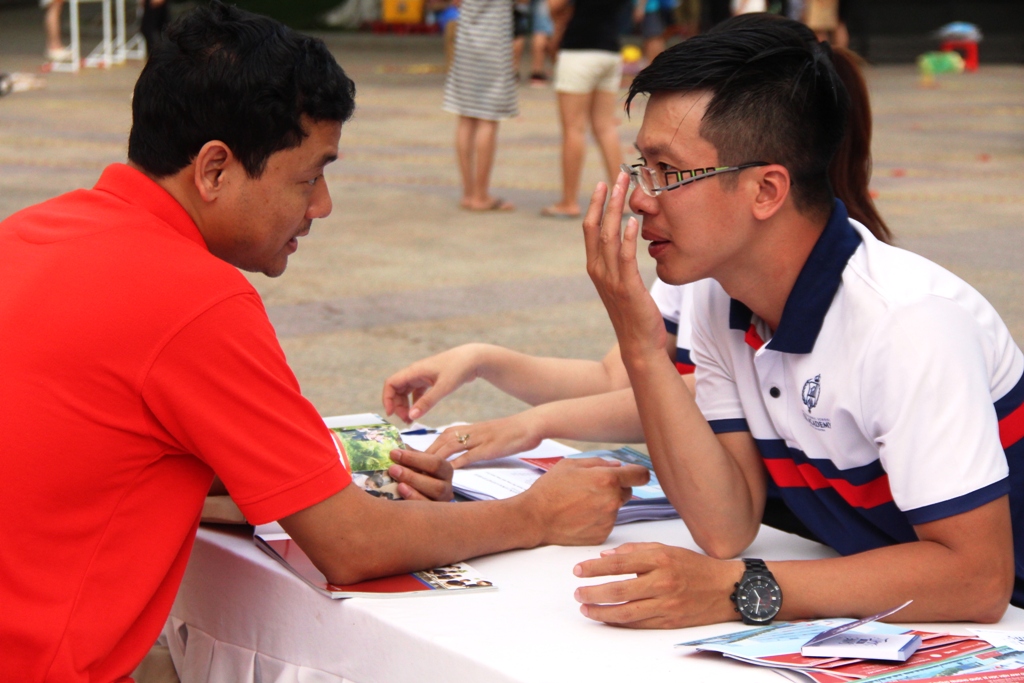 Một phụ huynh được thành viên UK Academy Huế tư vấn các chương trình học