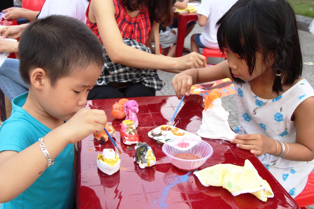 Bên cạnh đó còn có không gian tô tượng, vẽ tranh dành cho các em vui chơi
