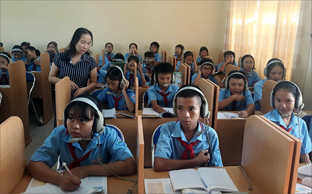 Giờ thực hành tiếng Anh của học sinh Trường THCS Phạm Văn Đồng