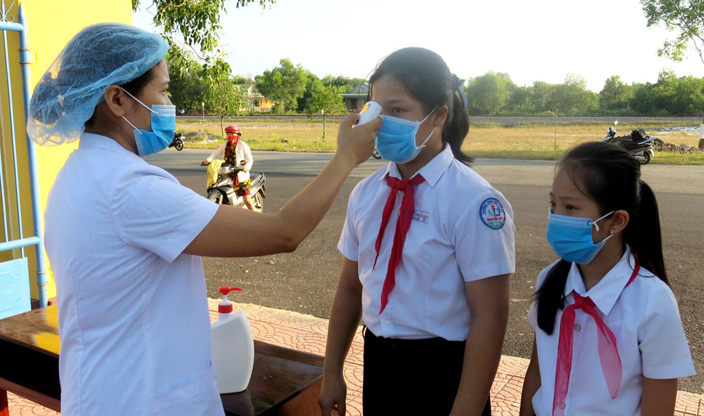 Để đón học sinh đi học trở lại, trước đó, các trường đã huy động cán bộ giáo viên vệ sinh trường, phòng học, các phòng chức năng, thiết bị thí nghiệm, đồ dùng dạy học. Tổ chức phun xịt xử khuẩn toàn bộ các lớp học, các phòng chức năng và khuôn viên xung quanh. Bên cạnh đó, mua sắm thêm các thiết bị phòng chống dịch như máy đo thân nhiệt, trang bị nước rửa tay, dung dịch sát khuẩn khô và nước, khẩu trang y tế.