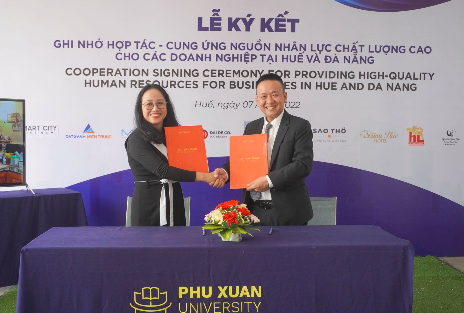 Dịp này, Trường ĐH Phú Xuân tổ chức ký kết hợp tác với các doanh nghiệp, gắn kết thêm cơ hội hợp tác giữa các bên, tạo tiền đề cho những bước phát triển tốt đẹp, bền vững trong tương lai.