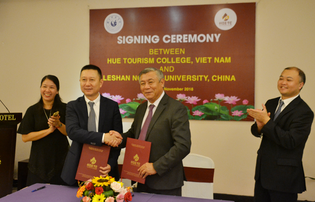 HNN.VN - Ngày 6/11, dưới sự chủ trì của Bộ Văn hóa, Thể thao và Du lịch, Trường cao đẳng Du lịch Huế đã ký kết biên bản hợp tác đào tạo nhân lực du lịch với Trường đại học Sư phạm Leshan (Trung Quốc).