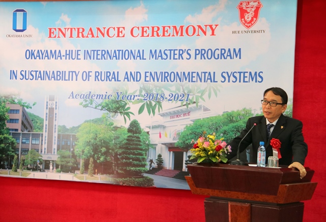 PGS. TS. Nguyễn Quang Linh, Giám đốc ĐH Huế phát biểu tại lễ khai giảng chương trình cao học Quốc tế Okayama - Huế