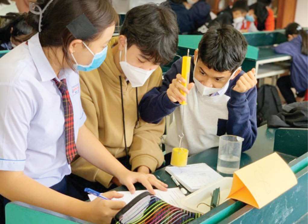 Học sinh Trường THCS Nguyễn Tri Phương trong giờ thực hành các thí nghiệm