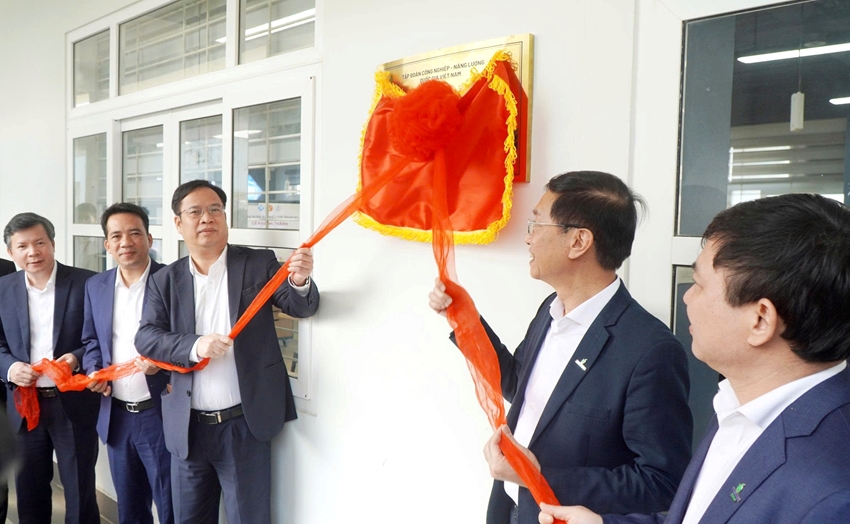 | Lãnh đạo thành phố thực hiện nghi thức khánh thành phòng thực hành giáo dục STEM |