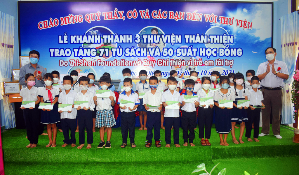 Tại lễ khánh thành, Quỹ Chí thiện, Văn phòng dự án Zhi-Shan đã trao 50 suất học bổng cho học sinh có hoàn cảnh khó khăn và trao tặng 71 tủ sách cho 5 trường tiểu học trên địa bàn huyện Phong Điền. Tổng kinh phí thực hiện thư viện thân thiện và trao học bỗng, tặng tủ sách là 330 triệu đồng.
