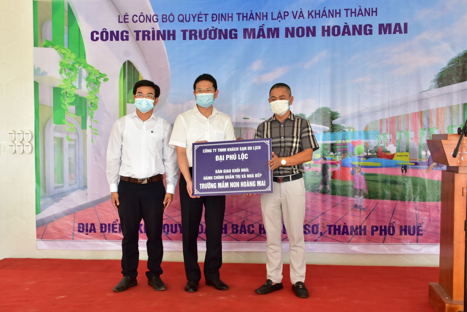 Dịp này, Phòng Giáo dục và đào tạo TP. Huế công bố quyết định về việc thành lập Trường mầm non Hoàng Mai. Theo đó, Trường mầm non Hoàng Mai là cơ sở giáo dục mầm non trong hệ thống giáo dục quốc dân (loại hình công lập), có tư cách pháp nhân, có tài khoản và con dấu riêng; chịu sự quản lý trực tiếp về chuyên môn của Phòng Giáo dục và đào tạo TP. Huế.