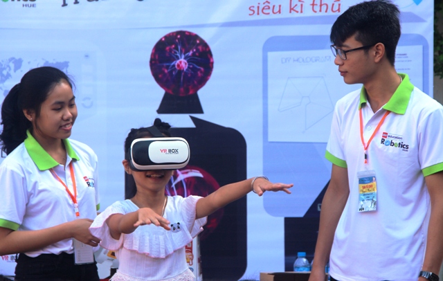 Học sinh trải nghiệm kính thực tế ảo không gian 3 chiều