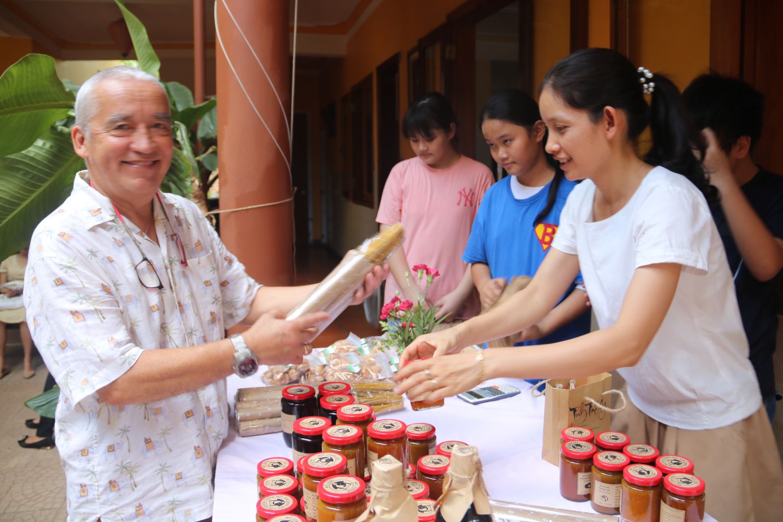 Ông cùng tham gia các hoạt động với trẻ khuyết tật ở Tịnh Trúc Gia