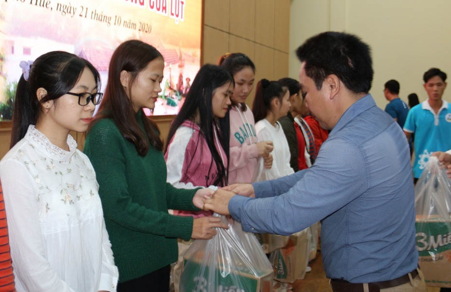 Trao quà cho sinh viên Trường ĐH Kinh tế bị ảnh hưởng do bão lũ