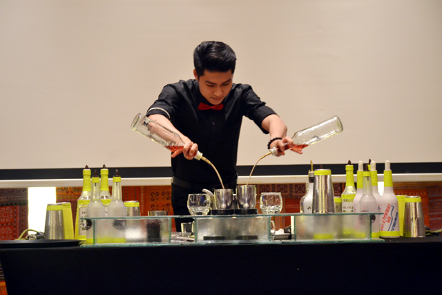 Sinh viên Trường cao đẳng nghề Du lịch Huế biểu diễn pha chế bartender tại buổi ký kết