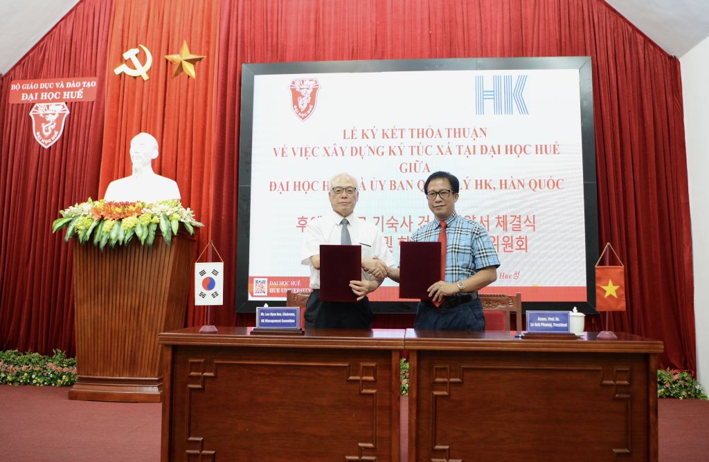 PGS.TS. Lê Anh Phương, Giám đốc ĐH Huế và Ông Lee Hyun Koo, Chủ tịch Ủy ban Quản lý HK, Hàn Quốc đã cùng ký biên bản thỏa thuận xây dựng ký túc xá sinh viên trên hai khu đất: Khu đất thứ nhất có diện tích 8.500m2 theo quy hoạch đã được UBND tỉnh Thừa Thiên Huế phê duyệt và khu đất thứ hai khoảng 30.000m2 trong khu quy hoạch ký túc xá thuộc Khu quy hoạch ĐH Huế đã được Thủ tướng Chính phủ phê duyệt.
