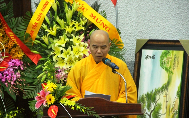 Hòa thượng Thích Hải Ấn, Viện trưởng Học viện Phật giáo Việt Nam tại Huế đọc diễn văn tại lễ kỷ niệm