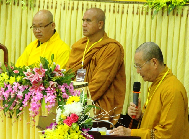 Hòa thượng Thích Nguyên Thành, Phó Viện trưởng, kiêm Trưởng phòng Đào tạo báo cáo thành quả sau 20 năm hoạt động