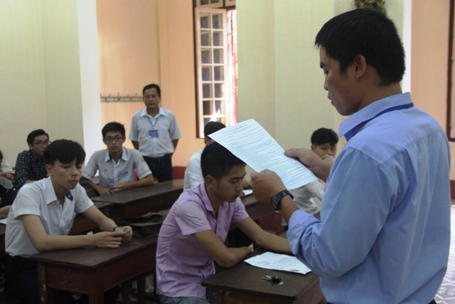 Tại các phòng thi, giám thị đã tiến hành kiếm hành kiểm tra lại thông tin từng thí sinh, phổ biến quy chế thi. Đặc biệt lưu ý không được đem các thiết bị như điện thoại, ghi âm, nghe lén… và các loại máy tính không nằm trong danh mục được đưa vào phòng thi. Ngoài ra, cần nắm kĩ thời gian vào phòng thi, thời gian làm bài. “Vấn đề này đã nói nhiều, nhắc hoài nhưng năm nào cũng có thí sinh vi phạm”, một giám thị nhắc nhở, lưu ý đến thí sinh.