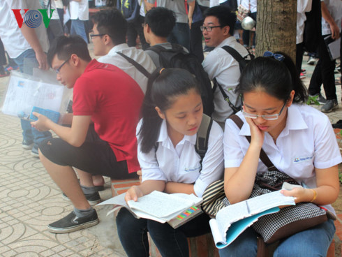 Thí sinh tranh thủ ôn lại bài trước khi bước vào kỳ thi THPT Quốc gia năm 2017