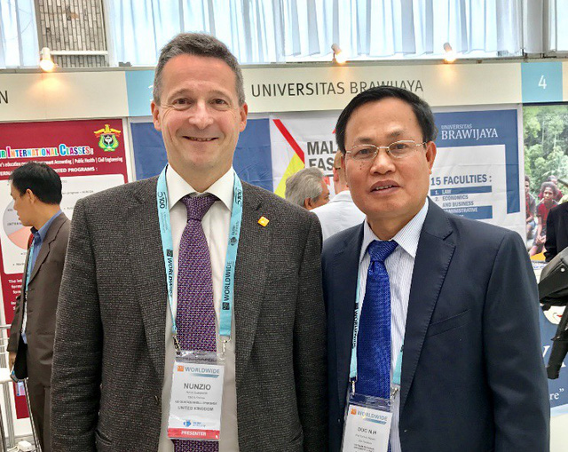 Nhà sáng lập Tổ chức xếp hạng QS - Ông Nunzio Quacquarelli và GS. Nguyễn Hữu Đức tại Hội thảo Xây dựng đại học xuất sắc - Kinh nghiệm nước Nga và các quốc gia mới nổi" tổ chức tại Thủ đô Matxcơva vào tháng 5/2018.