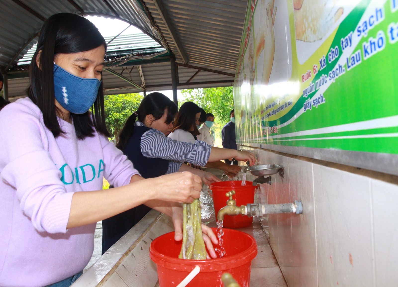 Các cô giáo Trường THCS Nguyễn Duy lau dọn vệ sinh để đón các em học sinh đi học trở lại