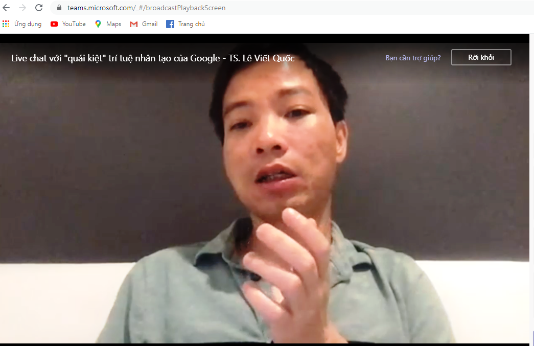 Quốc hiện đang làm việc cho Google và nổi tiếng với những dự án về AI như Google Translate, Google Search…. Dù bận rộn với công việc ở bên kia bán cầu, thi thoảng anh vẫn dành thời gian để kết nối, trò chuyện với nhiều bạn trẻ đam mê và dự định theo đuổi mảng AI ở quê nhà. Một ngày giữa tháng 3, dù trái múi giờ, hàng trăm bạn trẻ ở Việt Nam đã gặp anh Quốc không phải bằng da, bằng thịt… mà thông qua một màn hình trực tuyến được Đại học Fulbright Việt Nam kết nối.