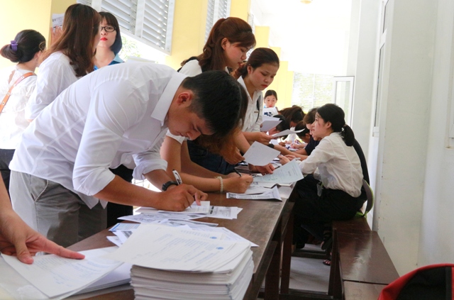 Đông đảo sinh viên đăng ký tham gia sàn giao dịch việc làm của các doanh nghiệp