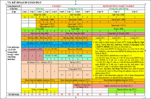 Hình ảnh mô tả thời gian học tập các môn trong Dự thảo chương trình giáo dục phổ thông tổng thể