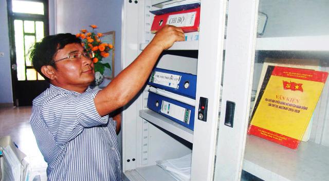 Thầy Huy kiểm tra, rà soát hồ sơ chi bộ nhà trường