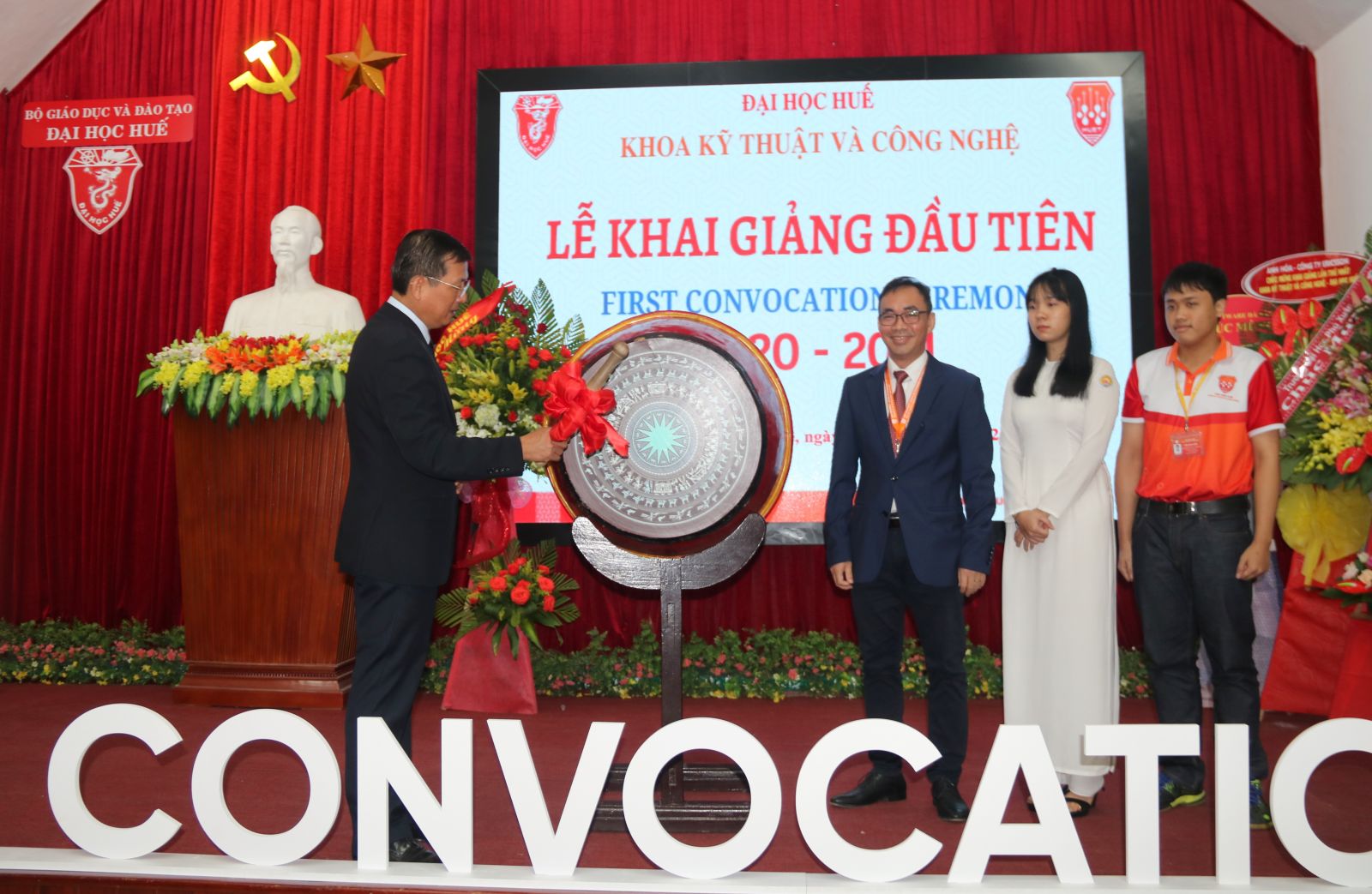 TS, Trương Quý Tùng, Phó Giám đốc ĐH Huế, Khoa Trưởng Khoa Kỹ thuật và Công nghệ - ĐH Huế đánh tếng trống khai giảng đầu tiên