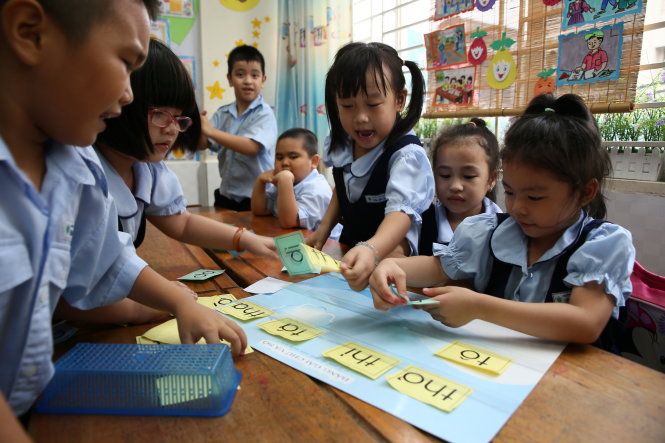 Theo nội dung được điều chỉnh trong chương trình giáo dục phổ thông tổng thể, từ năm học 2018 - 2019 sẽ triển khai đại trà chương trình mới ở lớp 1, thực nghiệm ở lớp 2. Trong ảnh: một tiết học nhóm của học sinh Trường tiểu học Lương Định Của, Q.3, TP.HCM