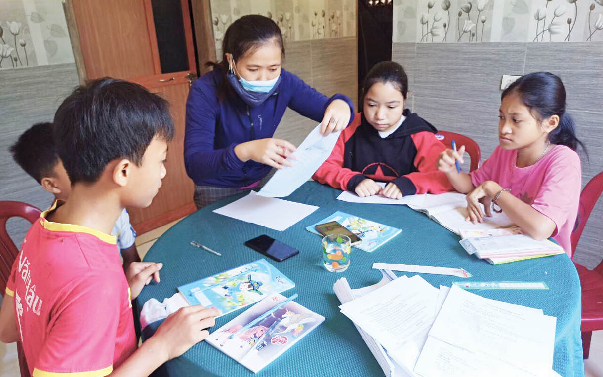 Thầy, cô giáo Trường THCS bán trú Long Quảng đến tận nhà để đôn đốc, kiểm tra việc học của các em học sinh