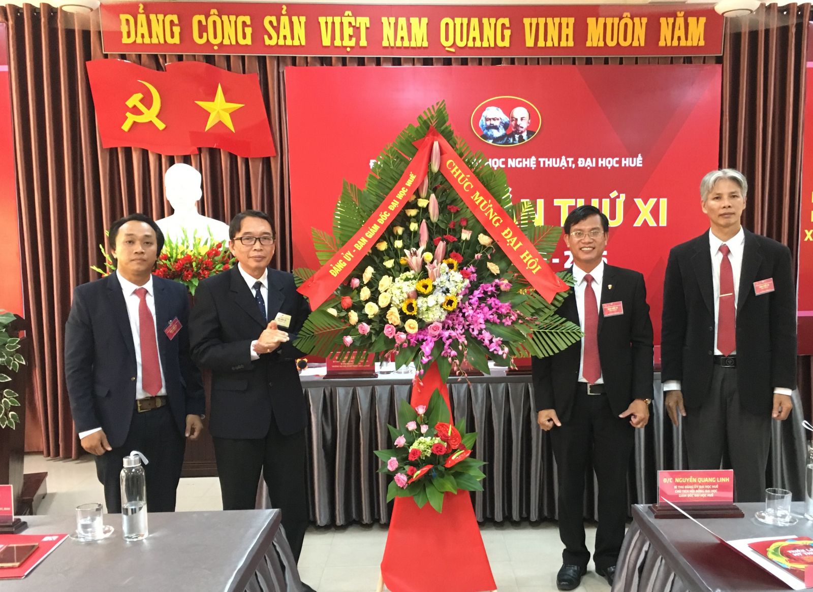 PGS.TS Nguyễn Quang Linh, Bí thư Đảng ủy, Giám đốc Đại học Huế tặng hoa chúc mừng Đại hội