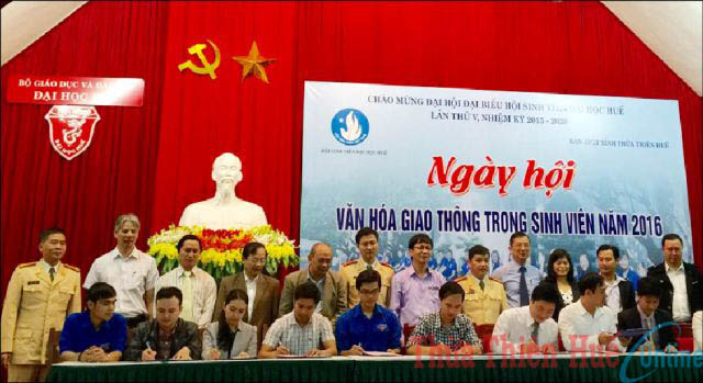 Ký cam kết không vi phạm luật giao thông đường bộ giữa Hội Sinh viên Đại học Huế và Hội Sinh viên các đơn vị trực thuộc