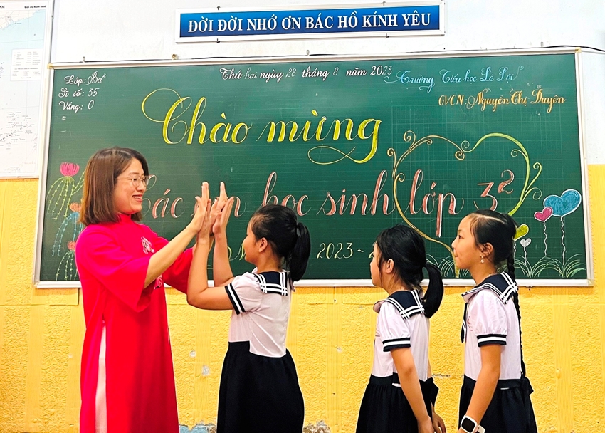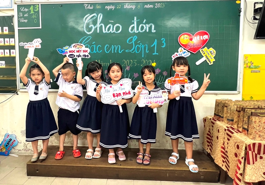 | Cô và trò Trường TH Lê Lợi háo hức với năm học mới |
