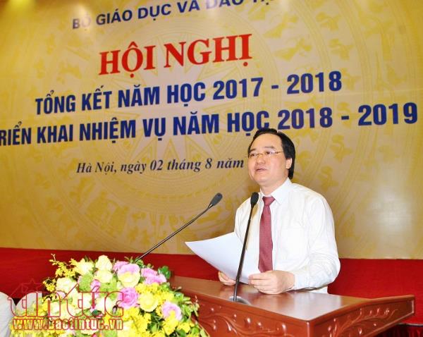 Phát biểu khai mạc Hội nghị, Bộ trưởng Bộ Giáo dục - Đào tạo (GD-ĐT) Phùng Xuân Nhạ chia sẻ các kết quả nổi bật, cũng như những vấn đề còn hạn chế, yếu kém trong thực hiện nhiệm vụ năm học vừa qua; từ đó nhấn mạnh một số nội dung quan trọng cần thảo luận tại Hội nghị.