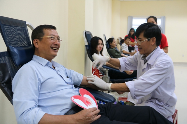 TS. Trương Quý Tùng, Phó Giám đốc ĐH Huế cùng tham gia hiến máu tình nguyện với các cán bộ, sinh viên