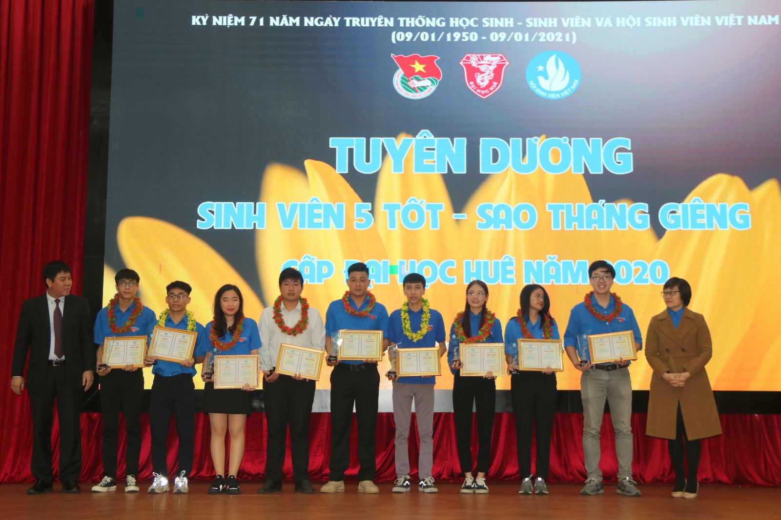 Với danh hiệu "Sinh viên 5 tốt" năm 2020 của Ban Chấp hành Hội Sinh viên ĐH Huế, có 12 cá nhân hội viên, sinh viên tiêu biểu và 217 cá nhân hội viên, sinh viên các trường, khoa và Phân hiệu ĐH Huế tại Quảng Trị nhận được danh hiệu này.
