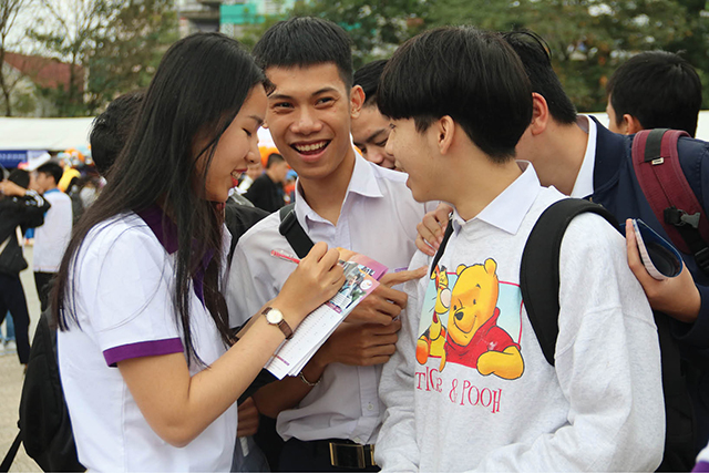 Thí sinh tìm hiểu ngành nghề ở một trường thuộc ĐH Huế trong năm 2019
