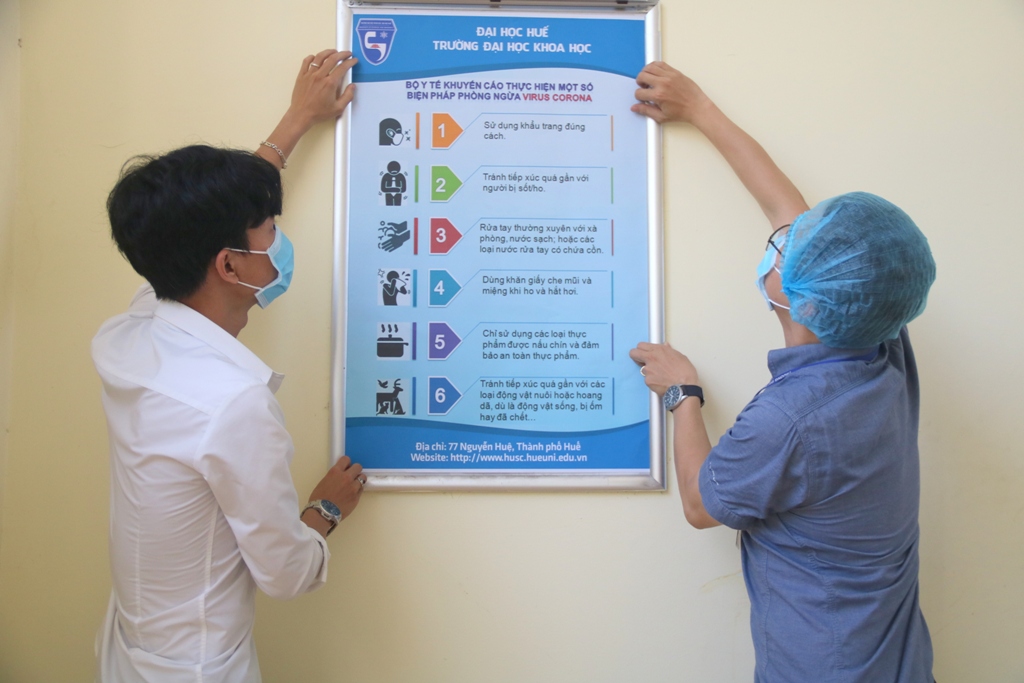 Trường ĐH Khoa học trang bị các bảng thông tin khuyến cáo sinh viên chủ động trong công tác phòng dịch COVID-19
