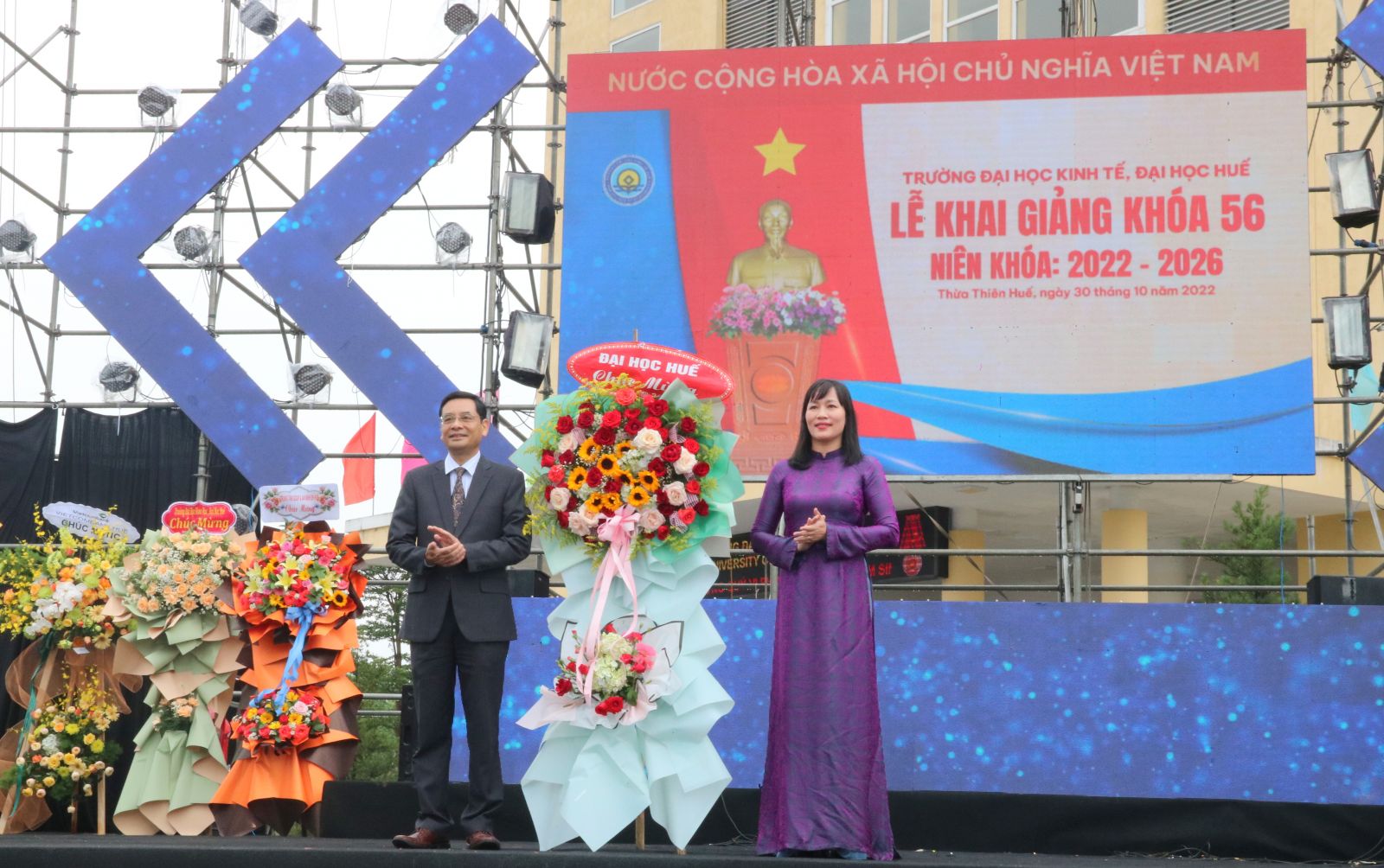 Đại diện lãnh đạo ĐH Huế tặng hoa chúc mừng Trường ĐH Kinh tế