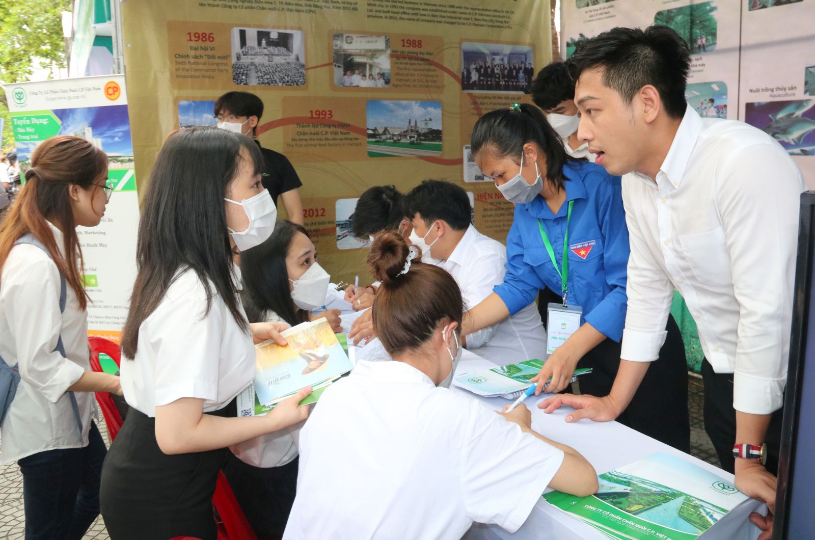 Điểm đáng chú ý là doanh nghiệp đăng ký tuyển dụng hơn 2.700 chỉ tiêu, vượt xa so với số sinh viên sẽ ra trường đợt này là hơn 1.100 sinh viên.