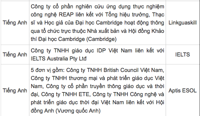 Sau gần 1 tháng ra quyết định tạm hoãn các kỳ thi chứng chỉ ngoại ngữ quốc tế, đến nay, Bộ Giáo dục và Đào tạo đã cấp phép cho 16 đơn vị tổ chức thi trở lại.