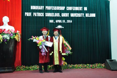 GS. Patrick Sorgeloos, Trưởng khoa Chăn nuôi, Trường Kỹ thuật và Khoa học Sinh học, Đại học Ghent, Vương quốc Bỉ, là chủ tịch Hội đồng hợp tác phát triển Đại học Ghent; chủ tịch Hội đồng hợp tác phát triển liên đại học Flanders (VLIR-UOS nhiệm kỳ 2008 - 2012 và nhiều vị trí quan trọng khác trong các hoạt động nghiên cứu khoa học. Giáo sư đã có nhiều đóng góp trong sự nghiệp giáo dục và đào tạo ở Việt Nam bằng các việc làm cụ thể như hướng dẫn thành công hàng chục nghiên cứu sinh Việt Nam trong đó có 5 nghiên cứu sinh người Huế; là người khởi xướng và hỗ trợ thành lập Mạng lưới Viện trường Thuỷ sản - Việt Nam (VIFINET) từ năm 2005. Với vai trò là Chủ tịch Hiệp hội Nuôi trồng thuỷ sản thế giới, GS là người đỡ đầu cho các nhà khoa học Việt Nam về Thuỷ sản tham gia các diễn đàn khoa học Thuỷ sản thế giới. Hiện GS. Patrick Sorgeloos đang hướng dẫn cho 3 nghiên cứu sinh và thạc sĩ của Đại học Huế tại Đại học Ghent, Vương quốc Bỉ. Ông cũng là người hỗ trợ và xây dựng thành công dự án VLIR-IUC tại Đại học Huế; là đầu mối xây dựng hợp tác với Đại học Huế thông qua việc giới thiệu các gia về khoa học thực phẩm, thuỷ sản, chăn nuôi; hình thành mạng lưới trường, viện nghiên cứu về khoa học thực phẩm Việt - Bỉ (VBFoodNet) và đang hỗ trợ cho Huế xây dựng hệ thống sản xuất thức ăn tươi sống cho Trung tâm Nghiên cứu và Thực hành thuỷ sản - Huế.