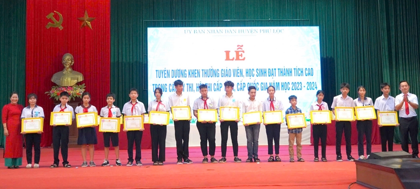 HNN.VN - Sáng 22/8, UBND huyện Phú Lộc tổ chức lễ tuyên dương, khen thưởng giáo viên, học sinh đạt thành tích cao trong các kỳ thi, hội thi cấp tỉnh, cấp quốc gia năm học 2023-2024.