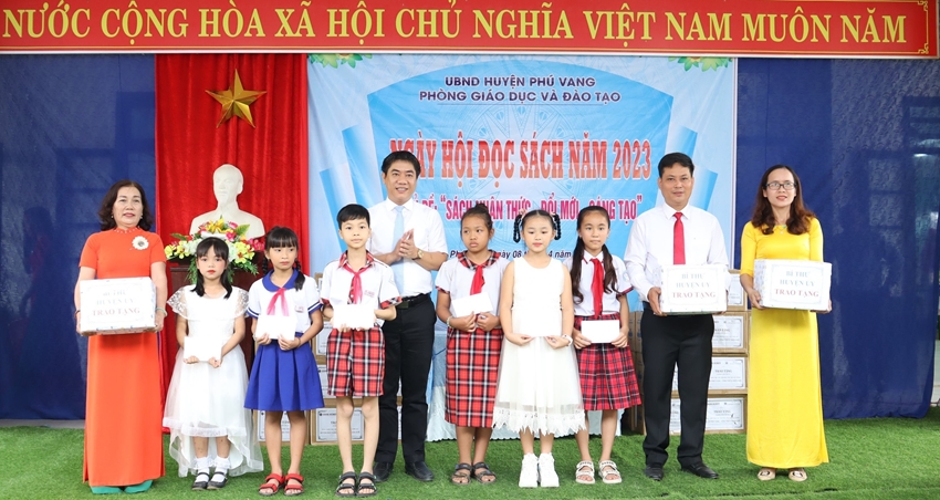 Tại Ngày hội đọc sách, Bí thư Huyện ủy Phú Vang đã trao tặng 6 tủ sách lớp học cho 6 trường và tặng nhiều suất quà cho các em học sinh nghèo vươn lên trong học tập; dự án Zhi – Shan trao tặng 107 tủ sách lớp học với trị giá hơn 160 triệu đồng cho các trường học trên địa bàn huyện Phú Vang; Phòng GD&ĐT huyện tặng giấy khen cho 72 học sinh và 12 nhân viên thư viện có thành tích xuất sắc trong phong trào đọc sách và hoạt động thư viện năm học 2022 – 2023.