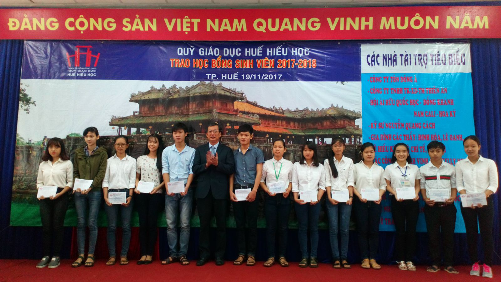 HNN.VN - Sáng 19/11, Quỹ Giáo dục Huế hiếu học trao học bổng năm 2017 cho 114 sinh viên, học sinh nghèo vượt khó.