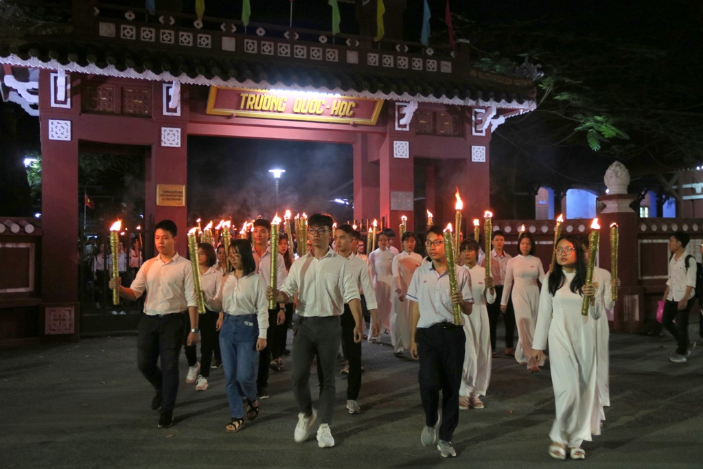 Lễ rước đuốc được xuất phát tại sân Trường THPT Chuyên Quốc Học qua đường Lê Lợi – Lê Lai, tiến vào sân Trường ĐH Y Dược, ĐH Huế, sau đó diễn ra lễ thắp đuốc và phút truyền thống phong trào học sinh, sinh viên và Hội sinh viên Việt Nam.