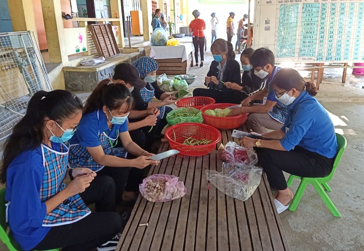 Ngay từ sáng sớm, lực lượng tình nguyện viên tiếp sức mùa thi tại A Lưới đã về tại các điểm tiếp đón, hỗ trợ thí sinh và người nhà để chuẩn bị bếp nấu ăn. Nhân viên cấp dưỡng các trường học cùng 14 tình nguyện viên tham gia đứng bếp (4 người chính và 10 người phục vụ) đã được Trung tâm Y tế huyện kiểm tra sức khỏe trước đó, đã đi chợ và chuẩn bị sơ chế kỹ nguyên liệu phục vụ bữa ăn miễn phí cho các thí sinh và phụ huynh.