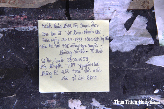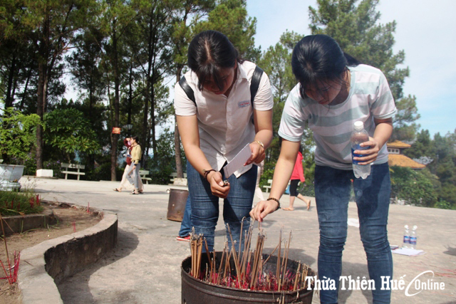 Sĩ tử Nguyễn Thị Anh Đào (TP. Huế) dự thi tại hội đồng thi trường THPT Cao Thắng quan niệm rằng, việc dâng hương, cầu an lành, gặp được may mắn trong mỗi kỳ thi đã trở thành thói quen đánh dấu thời khắc quan trọng. Hễ trong nhà có người đi thi, gia đình lại lên tượng Phật Quan Thế Âm Bồ Tát để nguyện cầu. Đào cho biết, sau khi dâng hương cầu nguyện, tinh thần cảm thấy nhẹ nhõm, tâm lý thoải mái hơn.